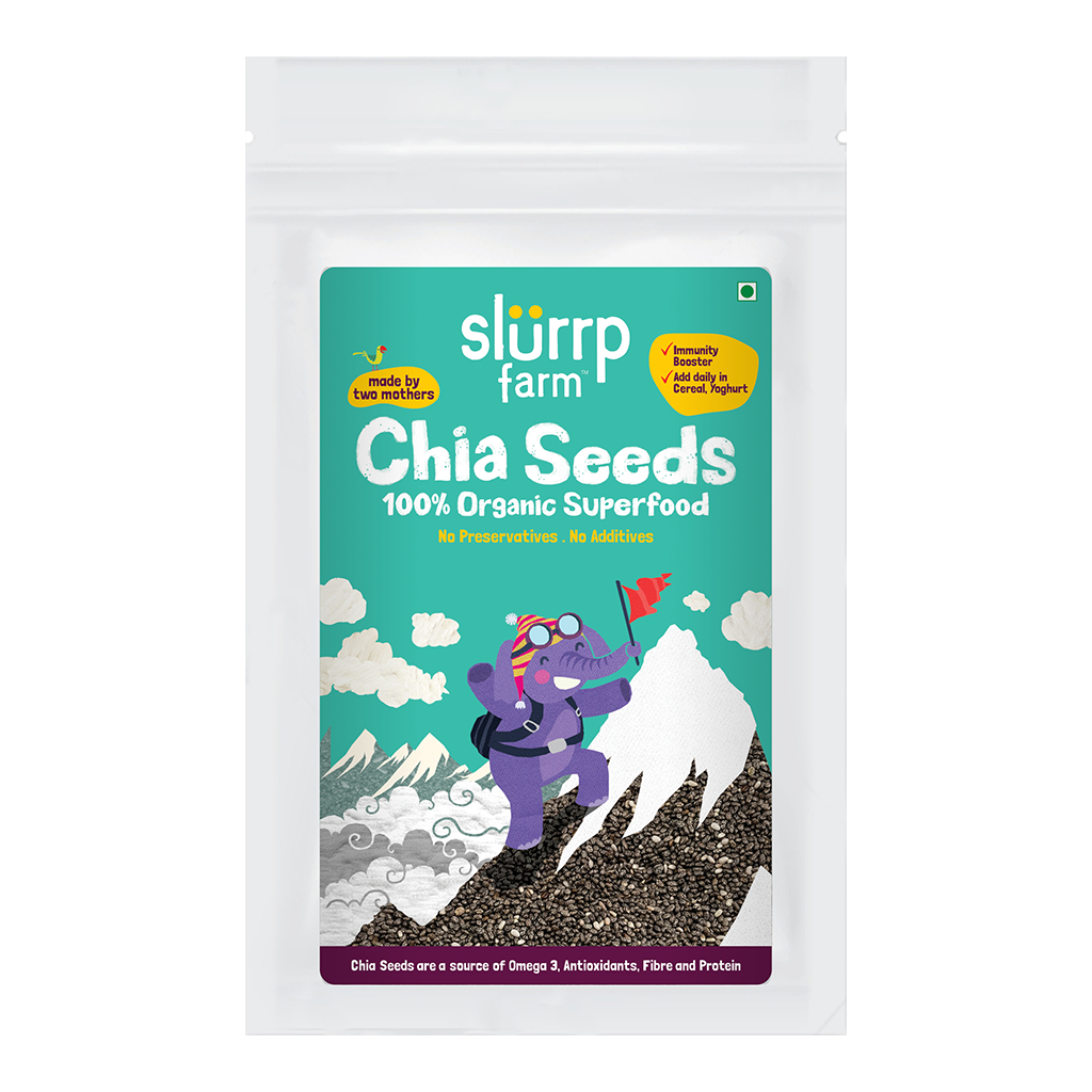 Slurrp Farm's Chia Seeds are a Superfood and 100% organic. They boost immunity, and are a great source of Omega 3, Antioxidants, Fibre, and Protein.