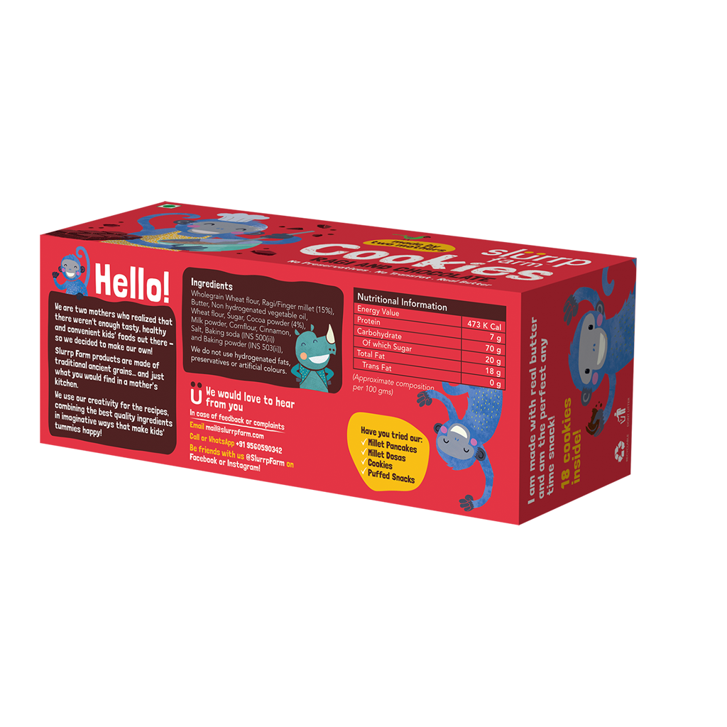 Who would believe that Ragi can taste so good! Gently roasted Ragi and Wholewheat flour paired with real butter, cocoa and the tiniest hint of cinnamon – your little ones will absolutely love these!